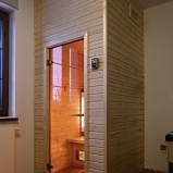 Obklad sauny je z fínskeho smreku, lavice z africkej vŕby - Abachi.