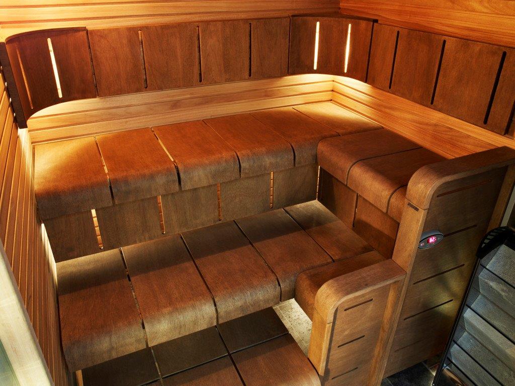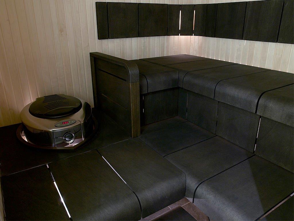 Lavice a operadlá Harvia Ventura sú vyrobené špeciálnou technológiou lepenia tenkých plátov exotického dreva FUMA pod veľkým tlakom, čím sa dosahuje materiál pre konštrukciu lavíc s ideálnymi vlastnosťami. Okrajové hrany lavíc sú naviac zaoblené a sedenie je tak extrémne pohodlné. V prípade, že je vhodné umiestniť do sauny osvetlenie, je teda štýlovo zabudované do oblých operadiel. VENTURA je niečím skutočne netradičným a týmto interiérom zaistíte jedinečný dojem z vašej sauny. Túto saunu môžete vidieť napríklad na predajniach OC MoDo - Praha, H-park - Brno, Sykora Home - Praha