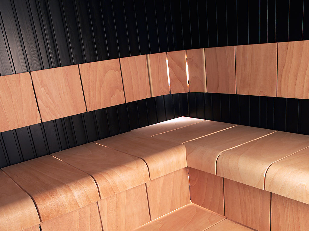 Ako sa stavia sauna za použitia materiálu pre interiér Harvia Ventura? Systém inštalácie a spracovania je nadčasový. Prednosťou je tiež jednoduchosť opravy a možnosti výmeny dielov, ktoré je možné dodatočne objednať či jednotlivo zakúpiť. Pružná preglejka je tvorená z exotického listnatého dreva stromu Fuma a má výnimočné vlastnosti. Vďaka veľkému prierezu kmeňa stromu tvorí najväčší plát preglejky na svete. Má preto široký rozsah aplikácií v truhlárstve, v designe interiéru budov, v lodnom priemysle - konštrukcii jácht a výrobe ekologických hračiek. Tieto preglejky je možné rýchlo a jednoducho spracovávať a po docielení finálnej podoby môže tento materiál zostať tuhý, a to v požadovanej forme.