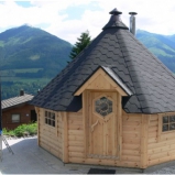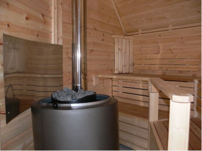Vonkajšie steny sauny KOTY sú vyrobené zo severskej borovica o hrúbke 45 mm, strešný materiál severská borovica o hrúbke 18 mm. Strešná krytina je na výber vo farebných prevedeniach (čierna, zelená, červená, modrá, zelená, hnedá) za príplatok. Izolovaný strop vr. parotesnej zábrany. Dvere s dvojitým preskleným oknom a zámkom. Dve okná s dvojitým izolovaným sklom. Do sauny sa vojde naraz až 9 osôb.