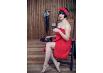 Wellness čelenka MaryBerry do sauny, červená s mašľou
