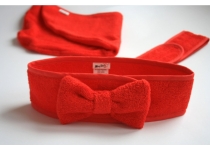 Čelenka na vlasy vhodná nielen do sauny ale počas SPA procedúr doma alebo v salóne. Unikátna kozmetická čelenka z veľmi hebkého materiálu a s univerzálnym zapínaním na suchý zips. V luxusnom červenom prevedení s elegantnou mašľou.